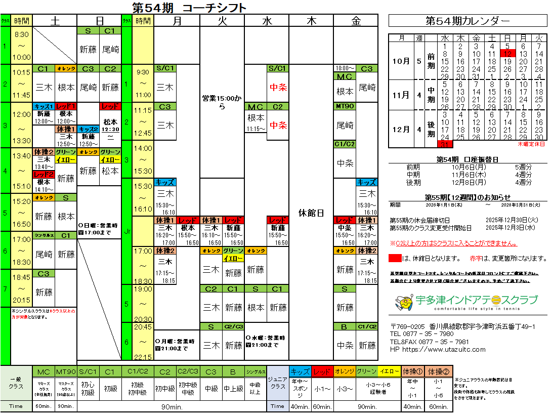 第54期(10/1~12/30)コーチシフト